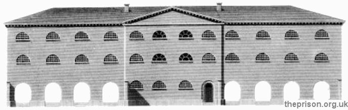 In the year 1816 the arcades were walled in, and a manufactory and day and store-rooms were constructed. Tread-wheels, a crank pump, and detached infirmaries, were subsequently erected in the rear of the prison. In 1835 very extensive additions were completed; consisting of 62 new cells for male prisoners, a separate prison for females, containing a washhouse, laundry, nine separate cells, and three cells of larger dimensions, with fire-places, for such female prisoners as have children with them.