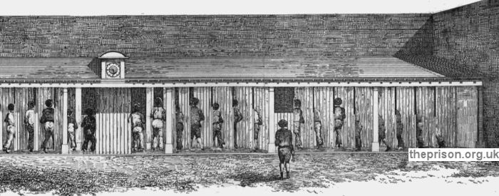 Every Prisoner, excepting Deserters, or for bastardy, is on his entrance undressed, washed, and the County clothing put on him; his own are purified, laid by, and returned to him at his discharge. The privies here are all water-closets.
