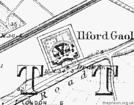 This is a House of Correction for the county of Essex, and here are also confined prisoners for trial at the assizes and sessions for the county, and the central criminal court. It is situated three-quarters of a mile from the town of Ilford, on the London road. It is a new brick building on the radiating plan, and was completed in the year 1831, at the cost of about £7,000. It appears in a good state of repair and is fire-proof, with the exception of the chapel. It is surrounded by an inner wall of the height of 18 feet, and an outer boundary wall of the height of 23 feet. The Keeper's house stands at the entrance, and on each side of it, adjoining the boundary wall, are the prison bakehouse, brewhouse, washhouse, and other offices. The position of these buildings tends to the insecurity of the prison; for, on the 2d of January 1833, James King, a convicted felon, got out of the infirmary at night, and, by mounting the roof of the brewhouse, escaped over the boundary wall. This is, however, stated to have been the only escape. The prison comprises ten wards, besides the male and female infirmaries. Five of the wards have day rooms of the dimensions of 14 feet by 13 feet each. The number and dimensions of the sleeping cells are:—