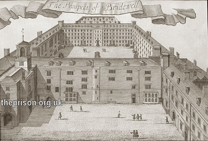 Bridewell was originally a palace built by Henry VIII on the west bank of the River Fleet, and took its name from the holy waters in the area linked with St Bridget or Bride. In 1553, Edward VI handed over the site to the City of London authorities as a 'house of occupation' for idlers, vagrants, and prostitutes. Bridewell was rather different from other penal establishments in being part of the poor relief system rather than the criminal justice system. Its aims were to reform the idle and disorderly, to make them earn their keep, and to deter others from indolence. The costs of running Bridewell were largely met from a tax on local inhabitants rather than fees extracted from the inmates who were mostly penniless.