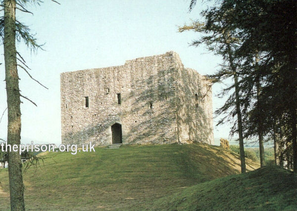 The tower was two storeys high and about 50 feet square, its walls being more than 10 feet thick and containing just a few narrow windows. It under some reconstruction in the late 13th century to increase its height. The interior of the original ground floor was filled in, blocking the original windows. There may have been apartments for the gaoler on the upper floor, with prison cells below, and the basement acting as a dungeon.