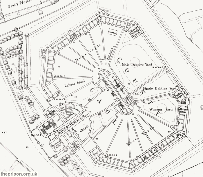 Following the nationalisation of the prison system, the establishment closed in 1881. The surviving buildings include the entrance block and the governor's house.