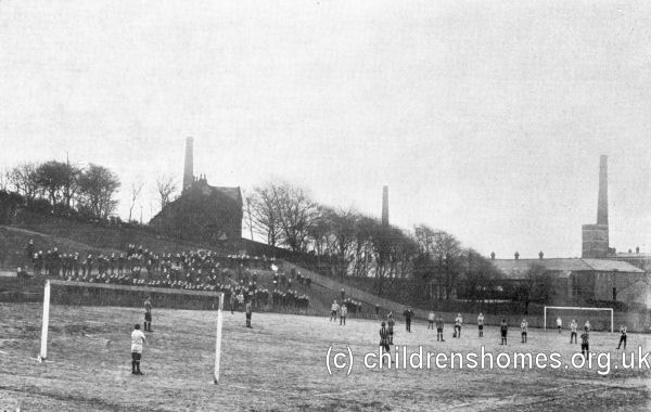 Buckley Hall Orphanage, Rochdale, Football Field, c.1912. © Peter Higginbotham