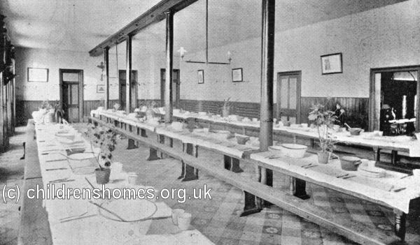 Buckley Hall Orphanage, Rochdale, Boys' Dining Hall, c.1912. © Peter Higginbotham
