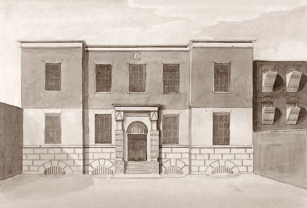 The prison was burnt down in the Gordon Riots in 1780 and temporarily took up residence in a neighbouring house, hired by the keeper. In 1784, John Howard described the interim accommodation: