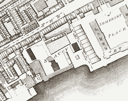 The origins of the Savoy Palace site, at the south side of The Strand, were given by James Neild in 1812 as follows: